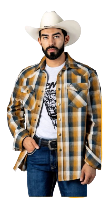 Esta camisola vaquera para hombre de manga larga es ideal para quienes buscan un look western auténtico, cómodo y con estilo.